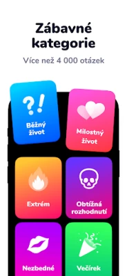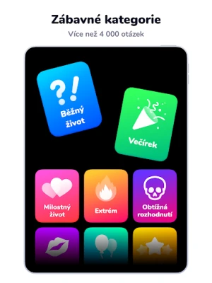 Nuda? To je slovo, které v Dilemmaly - Co bys radši? neznáme! Objevte rozsáhlou sbírku tematických balíčků, pečlivě připravených tak, aby oslovily každého hráče. Od lehkých dilemat z každodenního života, přes odvážné a provokativní otázky, až po ty nejniternější, které se dotýkají vztahů a lásky. Každý balíček je bránou k novým diskusím a sebereflexi. Neustále rozšiřovaná knihovna zaručuje, že se pokaždé setkáte s čerstvými a poutavými scénáři, které rozhýbou vaši fantazii a donutí vás k zamyšlení.
