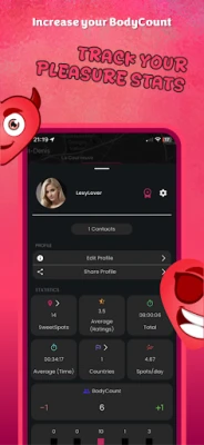 Proměňte své výjimečné okamžiky ve vizuální deník. Kdykoli zažijete něco nezapomenutelného, IntimApp vám umožní označit to jako „SweetSpot" – ať už jde o sólový objev, nebo sdílenou radost. Postupně tak vytváříte osobní mapu slasti, která odhaluje vaše oblíbená místa a preference. Z těchto záznamů IntimApp generuje fascinující statistiky: zjistěte, jak často, kde nebo s jakou intenzitou se váš intimní život odehrává. Tyto přehledy vám poskytnou cenné informace o vašich vzorcích a pomohou objevit nové dimenze potěšení.