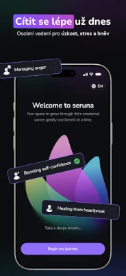 Ať už hledáte úlevu od stresu a úzkosti, toužíte po zlepšení kvality spánku, nebo chcete posílit svůj osobní rozvoj, Seruna nabízí ucelené nástroje pro duševní zdraví. Je vhodná jak pro začátečníky, tak pro pokročilé uživatele. Poskytuje specifická dechová cvičení, která mohou být nápomocná i v situacích paniky, pomohou vám zklidnit tělo a vrátit pozornost do přítomného okamžiku. Objevte širokou škálu řízených meditací přizpůsobených různým denním dobám, boxové dýchání pro rychlou úlevu, KBT deník a deník myšlenek pro hlubokou sebereflexi bez posuzování, nebo deník vděčnosti a české afirmace pro budování pozitivního myšlení. Seruna vás provede jasnou strukturou k postupnému růstu a posílení vašeho duševního zdraví.