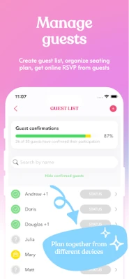 Kromě samotného harmonogramu je klíčové mít přehled o všech hostech a financích. S aplikací **Checklist** se správa seznamu hostů stává hračkou. Snadno importujte kontakty přímo z vašeho telefonu a sledujte jejich potvrzení účasti (RSVP) s nebývalou jednoduchostí. Udržujte si aktuální přehled o tom, kdo přijede oslavit váš velký den, a komunikujte s nimi efektivněji. Stejně tak je **Checklist** neocenitelným nástrojem pro správu svatebního rozpočtu. Integrovaná kalkulačka výdajů vám pomůže pečlivě monitorovat každou položku, udržet se v rámci stanovených finančních limitů a sledovat veškeré statistiky. Už žádné nepříjemné překvapení – vaše svatba zůstane finančně pod kontrolou.
